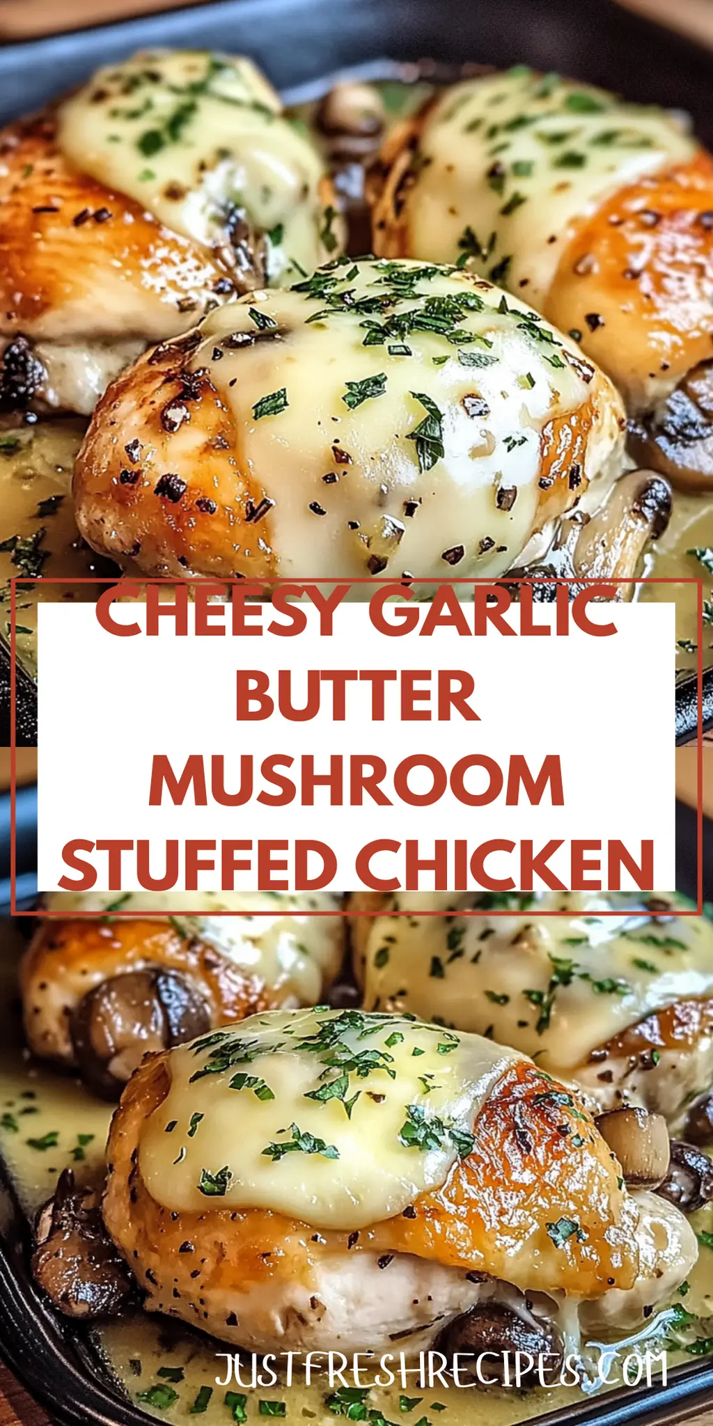 Cheesy Garlic Butter Mushroom Stuffed Chicken