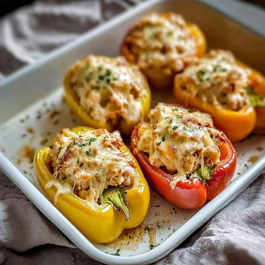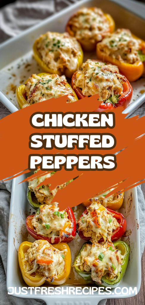 Chicken stuffed peppers are a comforting dish with a savory aroma that fills the kitchen. The tender peppers cradle a hearty blend of chicken, rice, and spices, creating a satisfying meal.