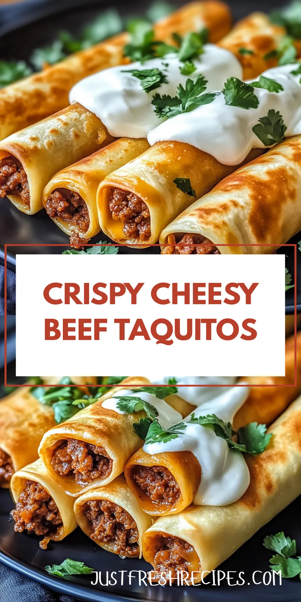 Preparing these Crispy Cheesy Beef Taquitos ahead of time is a fantastic way to streamline your weeknight dinners! You can assemble the taquitos up to 24 hours in advance and store them in the refrigerator, sealing them tightly to maintain their freshness. Just sprinkle a little extra cheese on top before baking to ensure that cheesy goodness is as melty as ever. When you’re ready to enjoy them, simply pop them in a preheated oven at 400°F (200°C) and bake for about 20 minutes until golden brown. This make-ahead method allows you to enjoy a delicious meal without the last-minute rush, making it perfect for busy schedules!
