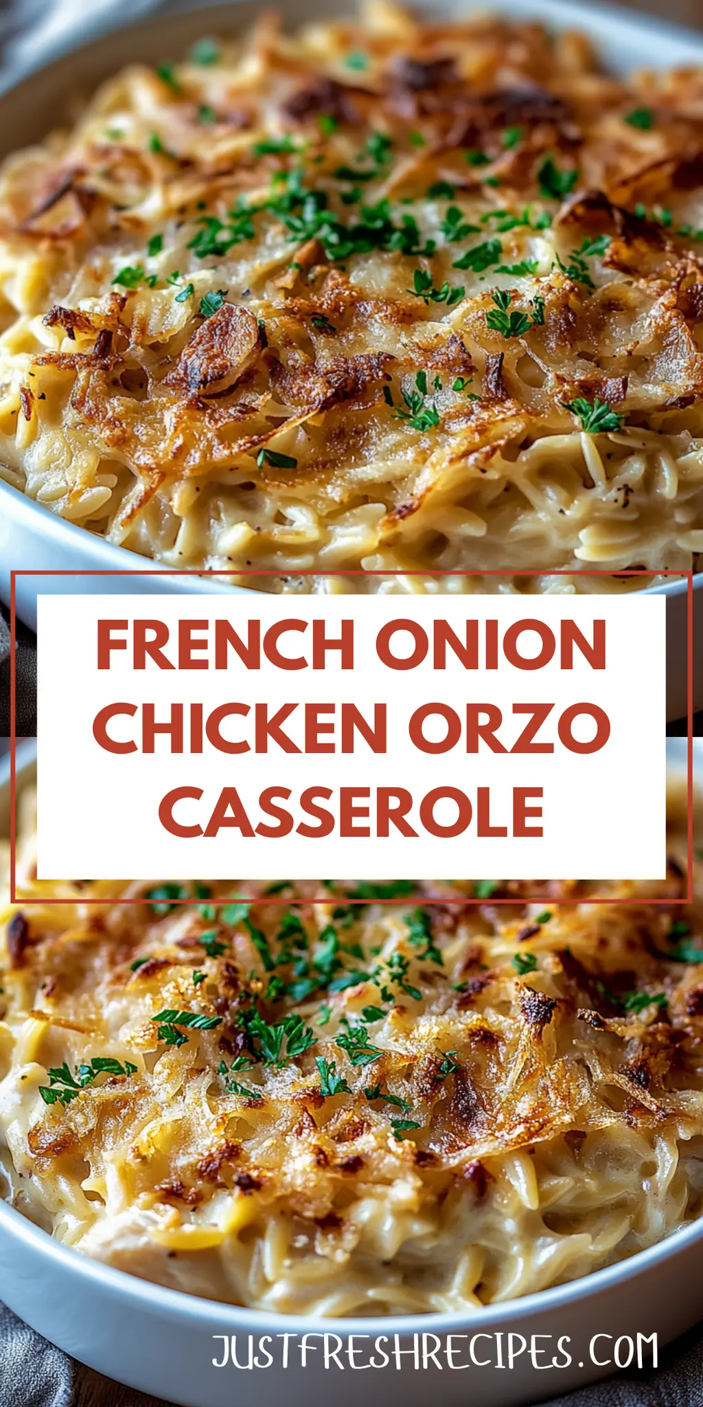 Elevate your next dinner with this fabulous French Onion Chicken Orzo Casserole that promises to impress with every bite!
