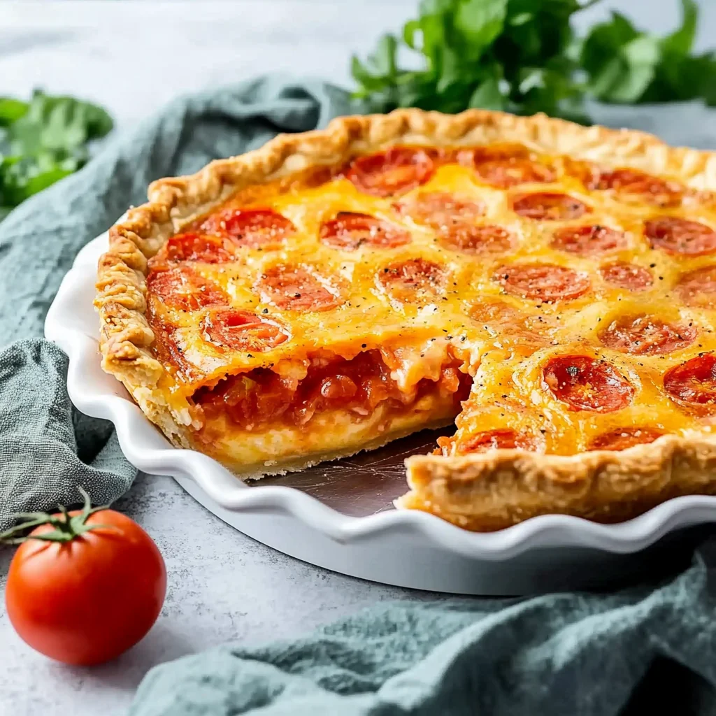 Spread half of the cheese mixture on the bottom of the crust, then layer half of the sliced tomatoes on top. Repeat with the remaining cheese and tomatoes.
