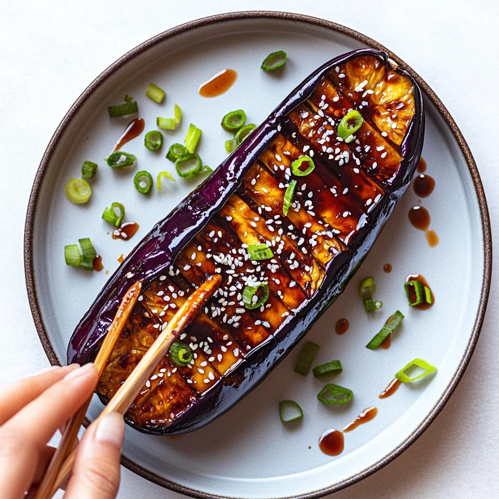 A savory and umami-rich dish featuring tender eggplant coated in a sweet and salty miso glaze, perfect as a side or main dish.